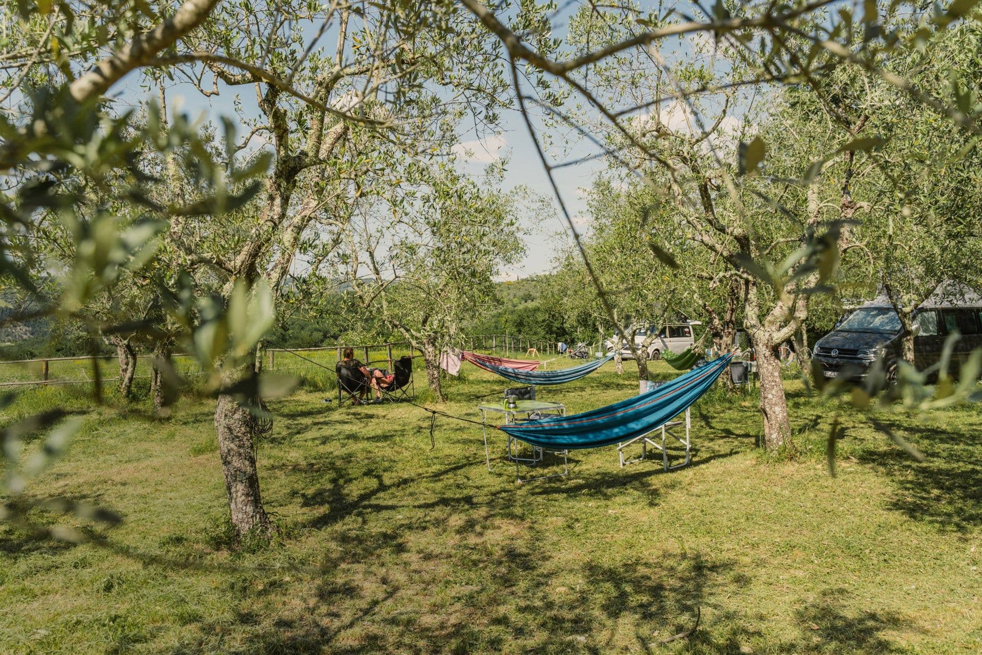 Ein familiengeführter Platz direkt am See mit eigenem Hundestrand und vielen schattigen Plätzen unter Olivenbäumen. Die spezielle Hundedusche und der Spazierweg entlang des Ufers machen Camping Fornella zu einem Highlight für Hundebesitzer. Der Platz bietet auch Mobilheime, falls du nicht mit eigenem Camper unterwegs bist.